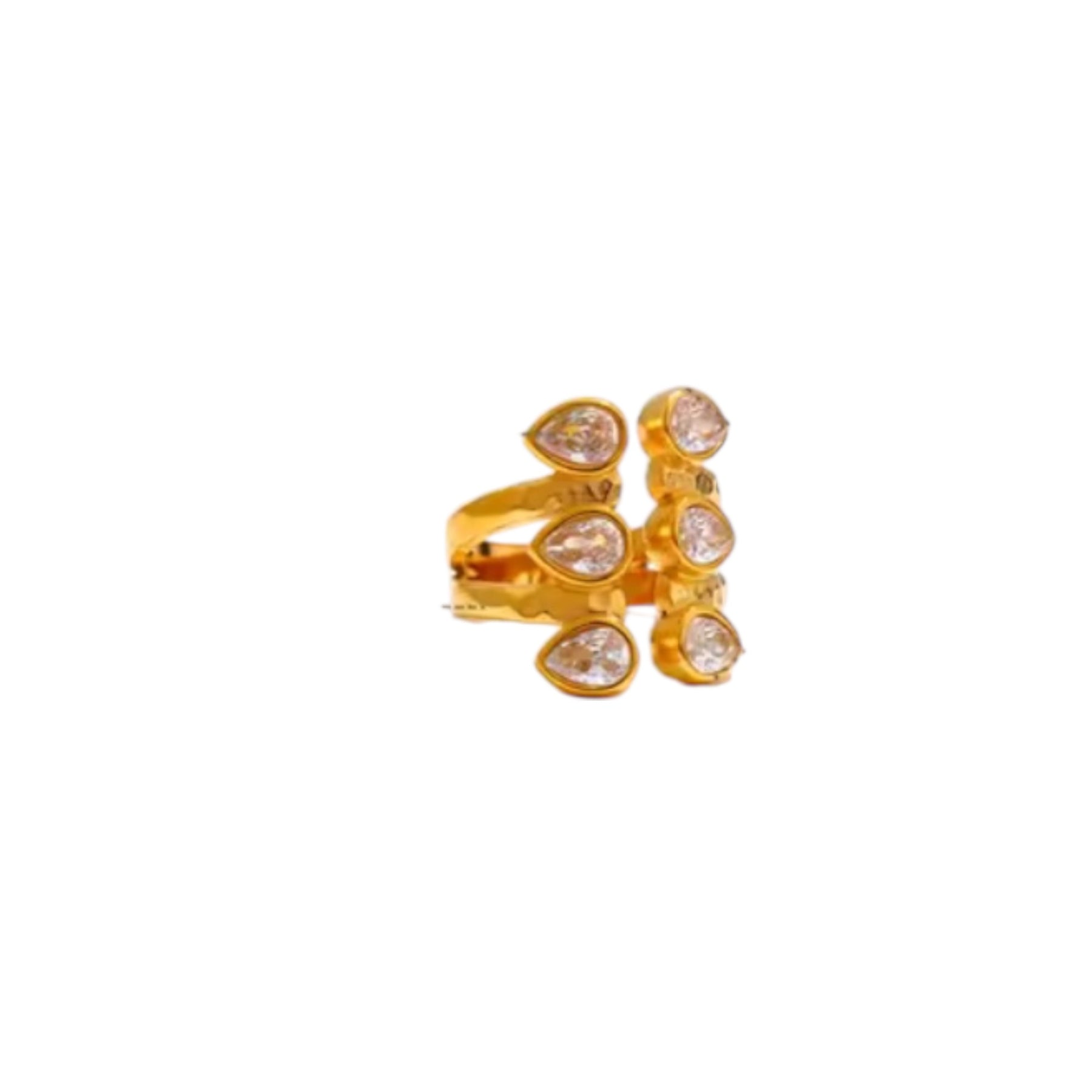 The Alessia Statement Ring is sculpted to stand out. Pear-cut stones framed in rich gold create dimension and refinement, adding strength to even the simplest outfit.